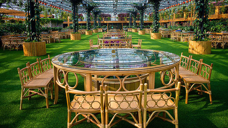 生態餐廳內部空間具備良好的光線通透性,四季常青、恒溫恒濕。人們在品嘗健康美味的同時,又可以欣賞到別具一格的自然美景,沒有鬧市的喧囂,讓人耳目一新、神清氣爽。